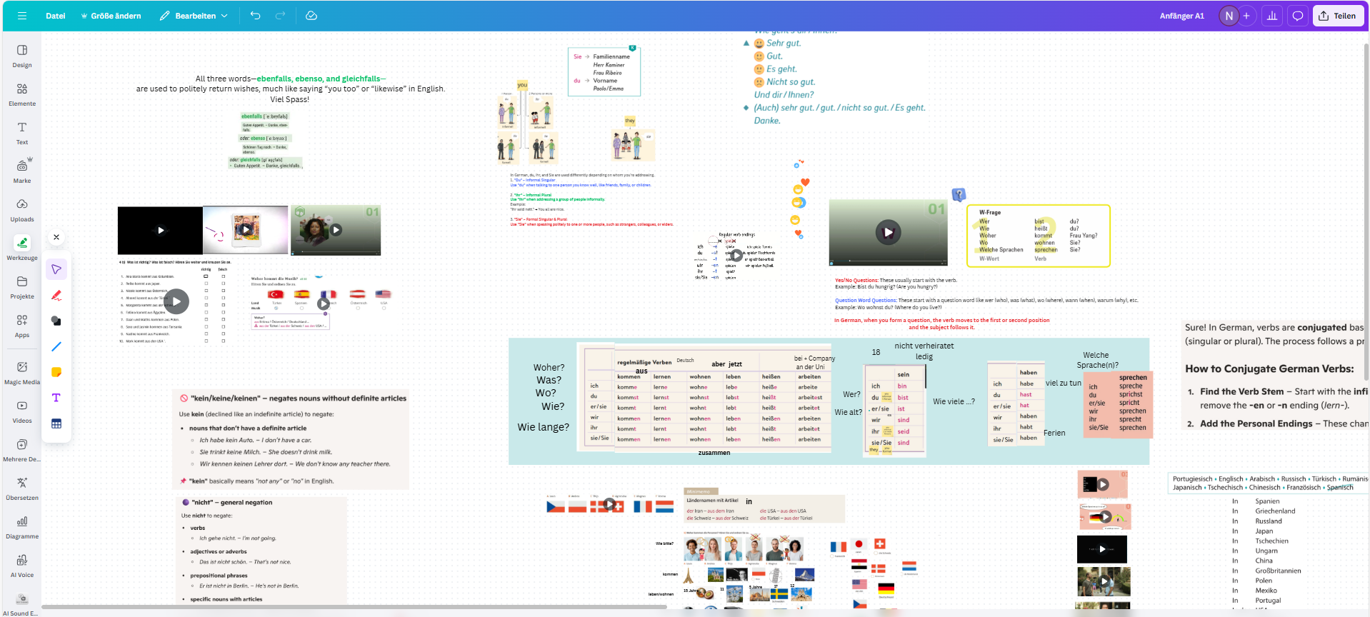 Ich verfüge über die nötige Infrastruktur und über eine große Auswahl an digitalen Werkzeugen, um meinen Unterricht modern und authentisch zu gestalten – mit besonderem Fokus auf aktive Teilnahme und klare Darstellung. Dazu gehören unter anderem:Canva-Whiteboard und Canva-Präsentationen, die ich selbst erstelle, zur visuellen Aufbereitung komplexer Inhalte und für kollaboratives Arbeiten.